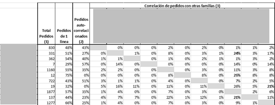 Se hizo un análisis de los pedidos de clientes para identificar patrones que facilitan estrategias de ubicación de referencias en el almacén y que permiten mejorar los tiempos de picking en su componente de recorridos.